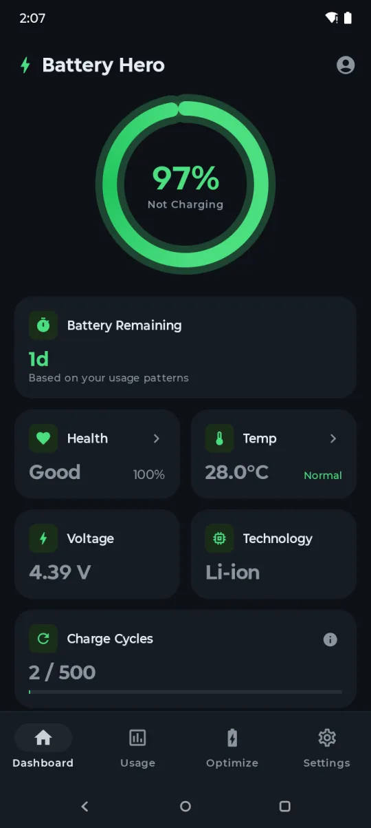 Download Battery Hero and start tracking your Android battery health in under a minute.
